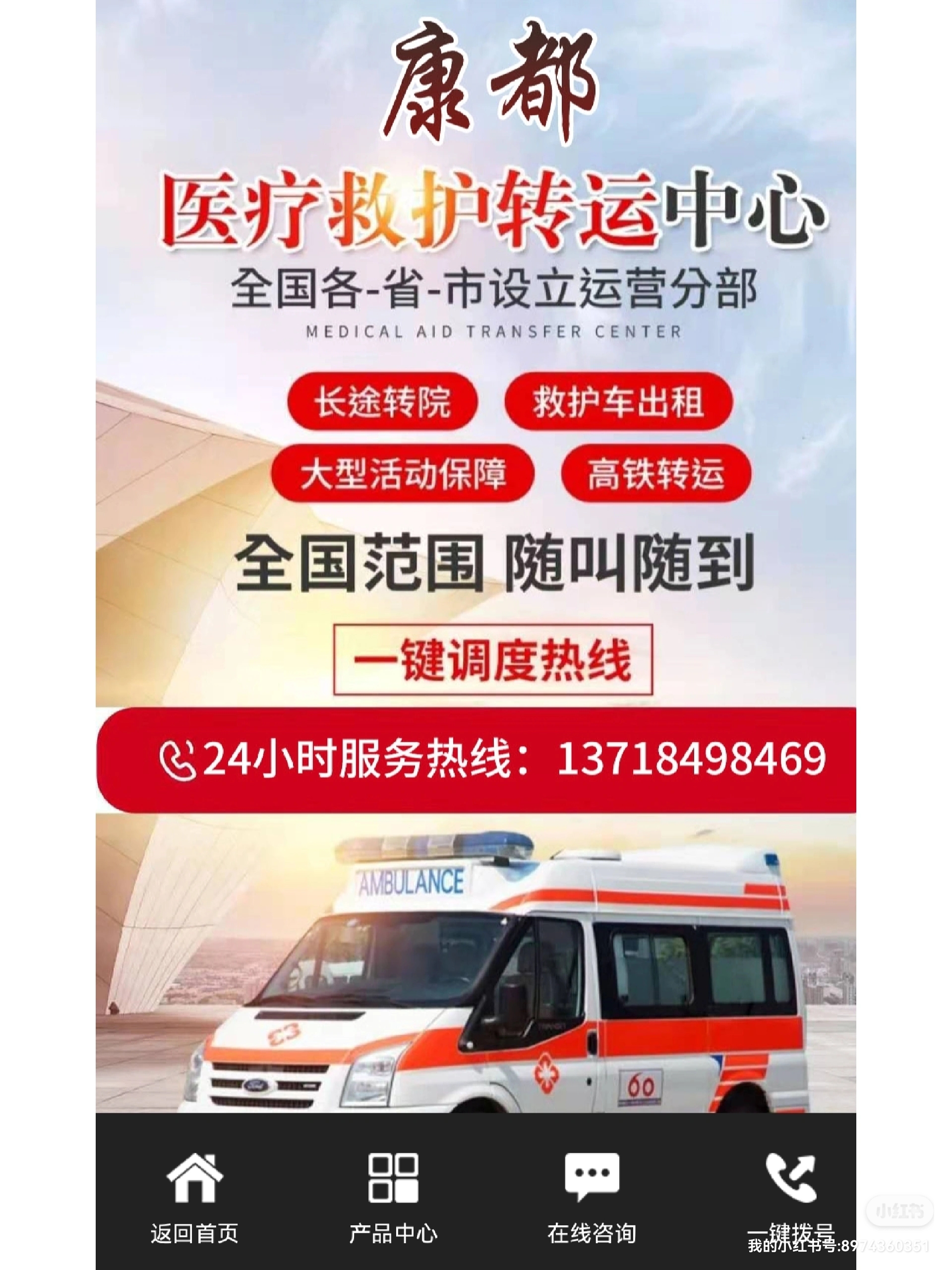 兴化市120救护车长途转运告诉您救护车是一种在时间前提下为病情严重的伤者提供医疗保障的汽车,可以帮助那些缺乏运输或危急从现场转移的病人。特殊类型的救护机构,如医院机场,在紧急情况下提供旅行或度假,远离医院。养老院或护理院的老年人在提供长期护理时经常使用救护车。救护车的应用:一、救护车专车,专人负责,出车人员穿工作服。二、救护车上的医疗器械每次接送任务完成后,应进行检查、补充。三、保持救护车清洁,每次